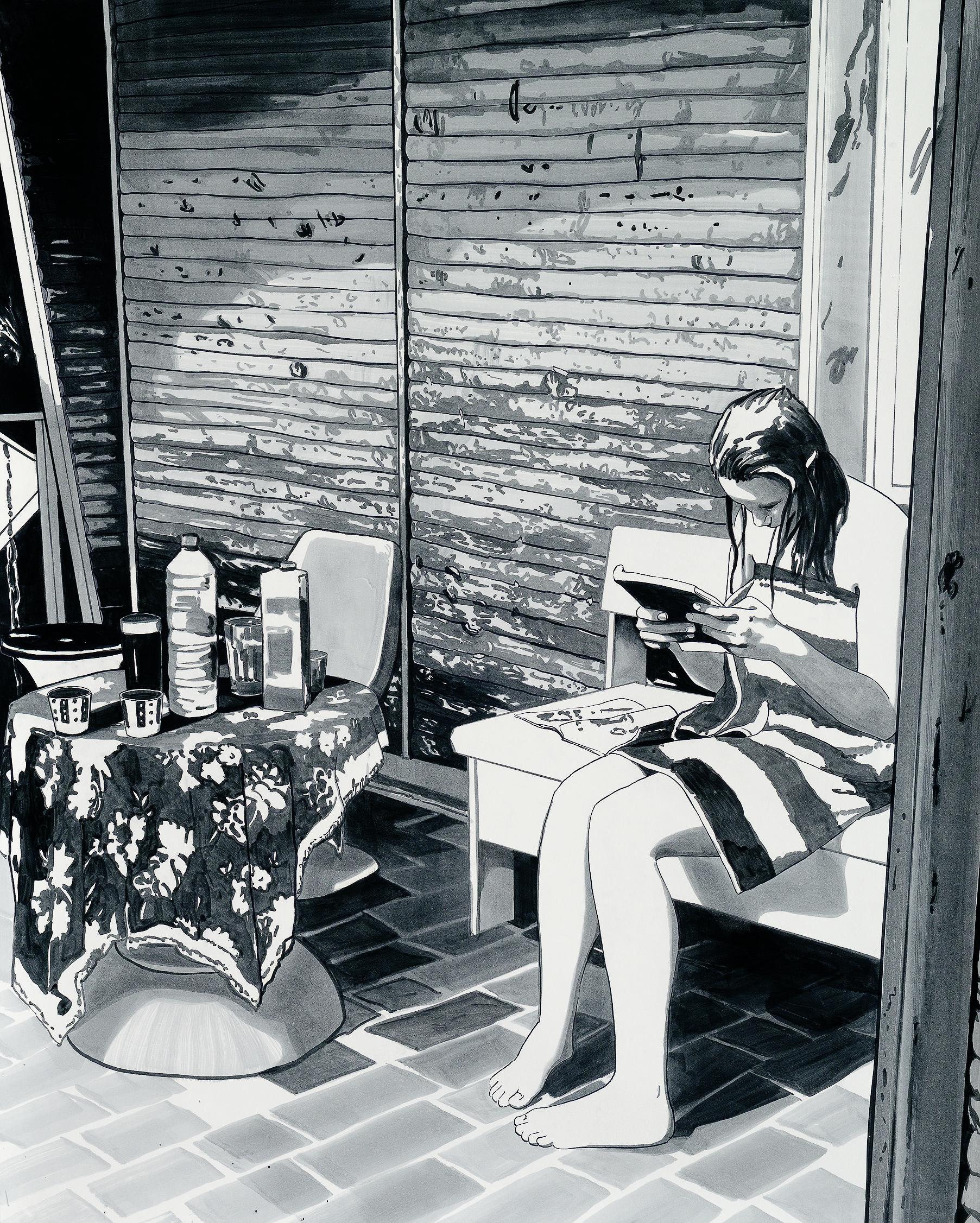 Sebastian Nebe gelingt es, mit seiner für ihn charakteristischen zeichnerischen Bildsprache in dünn lasierender Ölmalerei und der gezielten Inszenierung von Licht und Raum, eine Atmosphäre zu schaffen, die den Betrachter unmittelbar in seine Bildwelten hineinzieht. Häuser, Wälder, Autos und Boote werden zu Symbolen für das Spannungsfeld zwischen Heimat und Fremdheit, zwischen Geborgenheit und Bedrohung. Dabei bleibt stets ein Moment des Rätselhaften erhalten – das Bild wird zur Bühne für verborgene Geschichten und emotionalen Tiefgang.